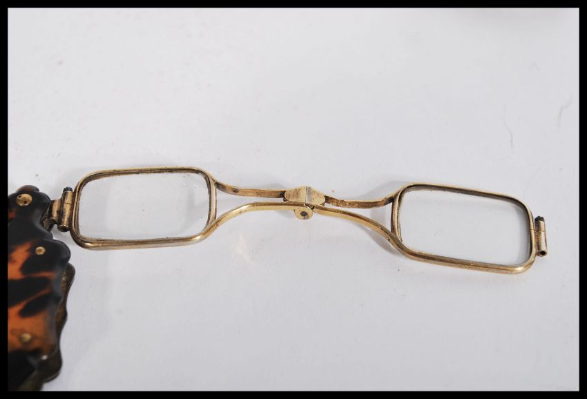 A fantastic pair of early 19th century Georgian gold and tortoiseshell Lorgnettes complete in case.