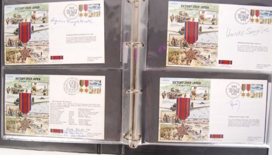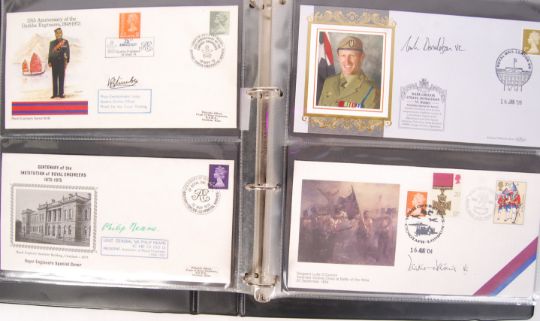 A superb album of 37x assorted First Day Covers ( FDC's ) - each autographed by a VC Victoria Cross recipient. Some multi signed. The album includes; a Colditz cover signed by Airey Neave Pat Reid and Charles Upham, other covers signed by Sir Roden Cutler, William Speakman-Pitt, Bill Reid, Mark Donaldson, Tasker Watkins, Agansing Rai, Umrao Singh, Ganju Lama, Capt Philip John Gardner, an Armistice Day cover signed by 6x VC recipients, Norman Jackson, TW Gould, Leonard Cheshire, Keith Payne and others. Fantastic collection.