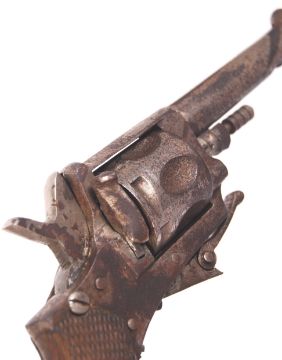 An antique early to mid-century blank firing sporting revolver pistol. Wooden grips. No makers marks present, the barrel housing stamped ' 43 '. Measures approx; 16cm long.