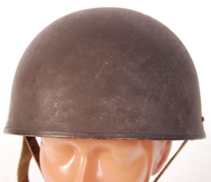 An original WWII Second World War British Airborne / Paratroopers steel combat helmet. Impressed mark to rim ' E99 '. Complete with original leather liner and strap (initialled by soldier). Issued to Airborne troops. Rare.