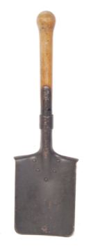 A scarce original WWI Second World War German army infantry entrenching tool / shovel. The steel shovel stamped for ' RG&Cie ' - Swiss makers. Wooden handled. Measures approx; 55cm tall.