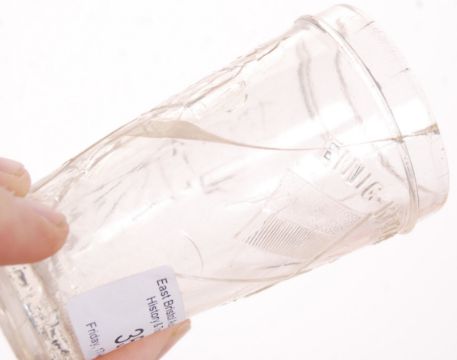 A collection of 3x Pre-WWI & WWI First World War German / Prussian pressed glass drinking glasses. The first being an Austro-Hungarian Union drinking glass (AF), the other two with pressed glass floral decoration - one still retaining its original lid (relic). All measure approx; 9cm tall.