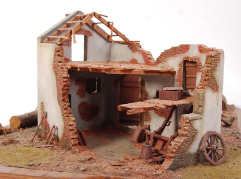 MILITARY MODEL: A superb museum quality WWII Second World War military model diorama. Showing an armoured military vehicle, titled ' Panzer In Normandy '. The model being superbly detailed with a naturalistic base , the tank being a ' Panzer tank ' alongside a bombed and ruin disused farmhouse having an anvil and tools inside with chickens , trees , soldiers , civilians and being mounted to a wooden plinth. Measures 18cm x 49cm x 37cm. NOTE: From a private collection of military dioramas. Each very well and carefully made, likely from Tamiya model kits. Some contain plastic painted figures, other figures diecast. Whilst very fragile, each kit remains largely in good condition with all pieces present and correct. Each mounted on a specific base for that model. Detail in fabulous. Buyers are reminded to satisfy themselves as to condition of individual lots prior to bidding, and these notes are for guidance only. These can be delivered NATIONWIDE by selected couriers , courier example costs; Bristol £25 + VAT , London £30 +VAT and Birmingham £45 +VAT.