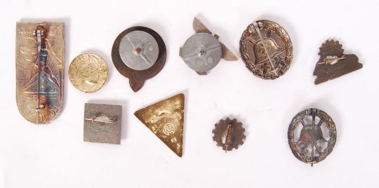 A large collection of 10x assorted WWII Second World War style replica Third Reich German Nazi military badges and medals. To include; Wound Badges, Lorient 1944 Shield, SS Stormtrooper badge, Iron Cross Spange, Volkswagen Workers badges and others.