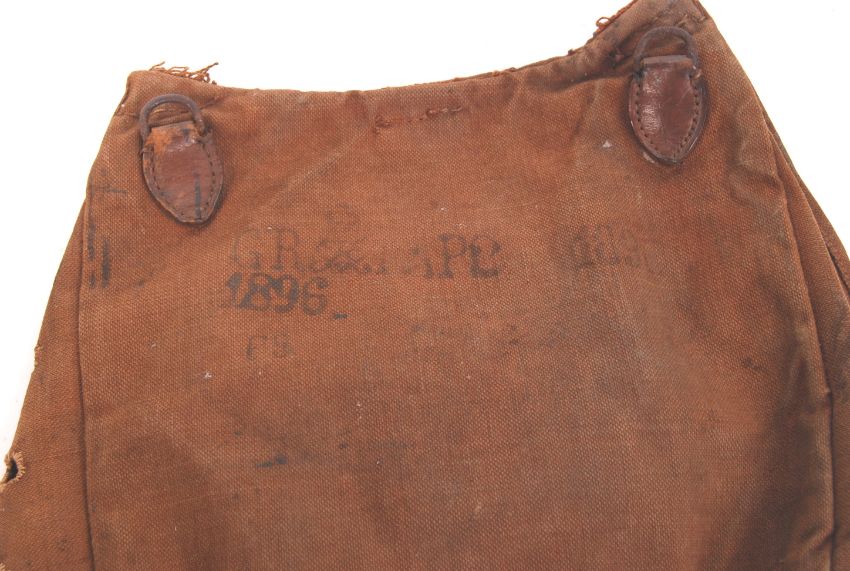 An original pre-WWI and WWI First World War era Prussian / German infantry soldier's uniform Bread Bag. Dated 1896 to underside of flap. Field brown canvas construction, with all buttons and leather wear present (missing one hanger to top right edge). Rare early example.