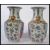 A near pair of Oriental Chinese ceramic vases one being an 18th century example with famille rose medallions and cartouche panels depicting traditional scenes having gilt Fu dog handles. Ochre red character marks to base. The other being a later 19th century example of the same vases.