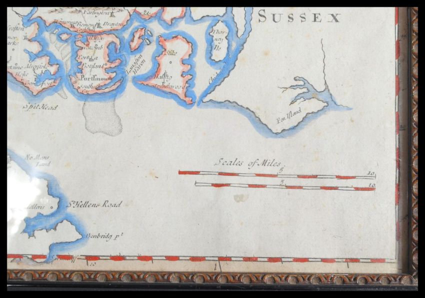 A 19th century framed and glazed hand coloured map by Robert Morden depicting park of Hampshire. Measures 41.5 cm high and 47.5 cm wide.