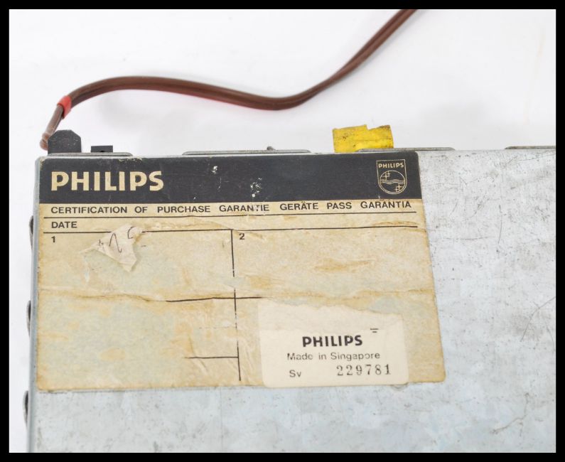 A group of four vintage car radio receivers to include an 8 Track player, Philips etc please refer to images.