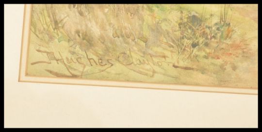 Joseph Hughes Clayton (1870 - 1930) A framed and glazed landscape scene of a farmer and wife with sheep in a countryside setting. Signed to the corner by the artist. Frame measures 81 cm x 62 cm.