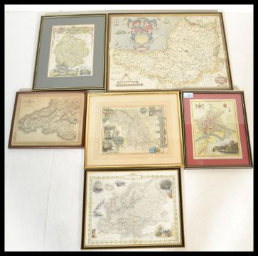 A group of vintage map prints to include Hereford, Gloucester, Europe, South Wales, Somerset etc. All framed and glazed. Please see images.