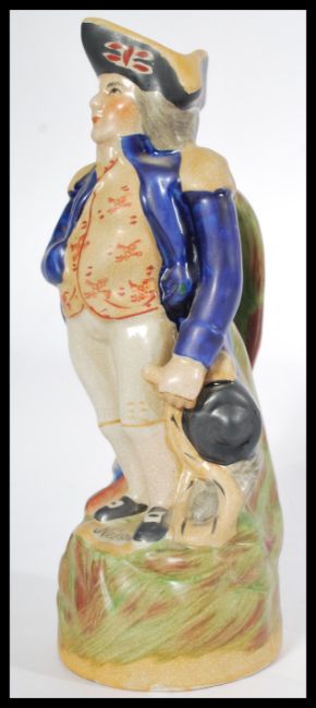 NELSON: A STAFFORDSHIRE TOBY JUG, 19th century, figure modelled standing before a cannon, titled to the base. Measures 28 cm high.