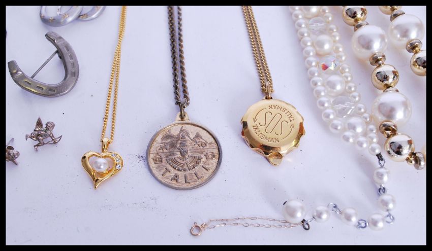 A group of 9ct gold and vintage costume jewellery to include a hallmarked locket pendant, gold crucifix pendant etc. Please see images.