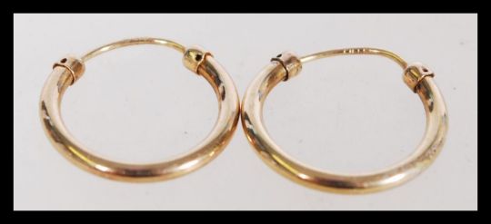A group of four pairs of 9ct gold sleeper hoop earrings to include a twist design, two pairs of plain hoops and one white gold clip clasp earrings. The total weight is 2.2 grams.