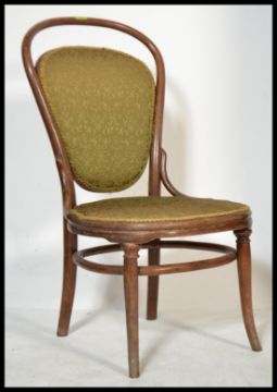 An early 20th Century Thonet bentwood nursing chair, upholstered seat pad and backrest raised on shaped supports united by stretchers.