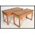 A pair of vintage circa 1950's double beech wood school desks, each fitted with a pair of flip top lids, ink wells. Raised on square supports united by stretchers. Measures 58 cm x 102 cm x 53 cm.