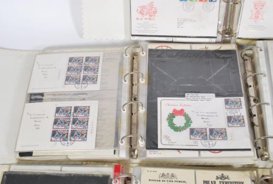 A vintage Great Britain stamp collection from 1971-1980's in seven large ring binders. There is a huge accumulation: Commems, Definitives, FDCs, Postcards and Oddments all in A4 Pockets. Measures: 32cm high x 29cm wide.