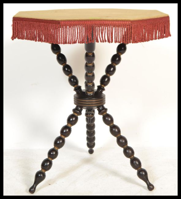 A 19th Century Victorian ebonised and gilt framed Gypsy table, with velvet covered top and raised on bobbin turned supports. Measures: 65cm high x 56cm wide