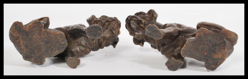 A pair of 20th century bronze / bronzed figurine of dogs having detailed features. measures: 7.5cm high x 13cm wide.