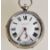 A silver hallmarked large pocket watch having a white enamel face with Roman numeral chapter ring and gilt faceted hands. The dial signed J Harris and Son Manchester with subsidiary dial to six. Weighs 147 grams. Measures: 5.5cm diameter.