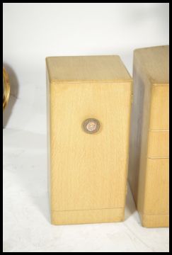 A vintage / retro 20th Century Art Deco bedroom suite comprising of a drop centre dressing table, bedside cabinet and a chest of drawers. please refer to images. Measures: 145cm high x 146cm wide x 58cm diameter.