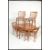 A retro teak wood danish inspired dining suite, extendable oval dining table with six rail back dining chairs. Measures: 76cm high x 105cm wide x 100cm diameter.