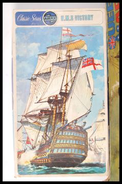 A collection of assorted vintage Airfix model kits to include; 1/72 Short Sunderland III , 1:32 German Infantry 1939-45 , HO scale Sheriff Of Nottingham , Queen Mary and H.M.S Victory. All items unchecked for completeness.