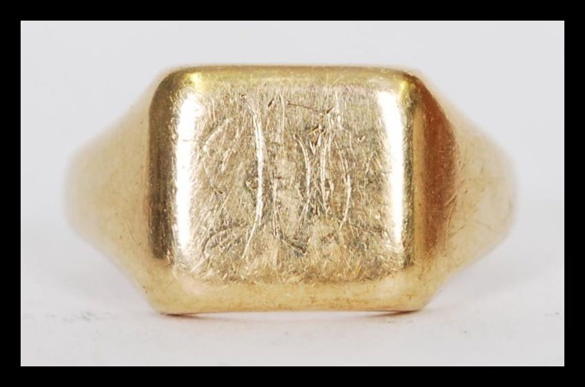 A 20th century 9ct gold hallmarked Birmingham cushion shaped signet ring weighing 9.9 grams,size approximately Z .