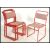 A set of five vintage 20th century village hall / Industrial metal stacking chairs  of tubular construction finished in red with canvas seats and back rests. Measures 85 cm x 40 cm x 46 cm.