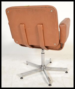 A vintage / retro 20th Century swivel chair - desk armchair being raised on a chrome adjustable upright on four splayed supports. Measures 77 cm x 58 cm x 50 cm.
