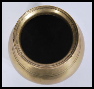 A 19th century Chinese bronze prayer bowl of bulbous form having a tapered neck with flared rim. Measures: 12cm high x 14cm diameter.