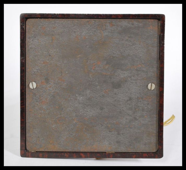 A vintage early 20th century Bakelite Art Deco lamp on a square base with two circular mint green glass shades. Measures: 30cm high x 13cm wide x 13cm diameter.