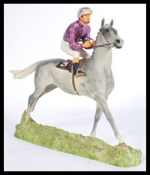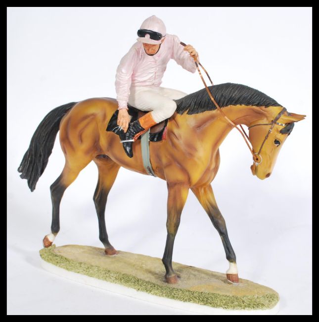 A group of four David Geentry racehorse and jockey equestrian related figures to include In The Winner's Enclosure, Cruising Home, Going to Post and On Parade. Measures: 29cm high x 38cm wide biggest.