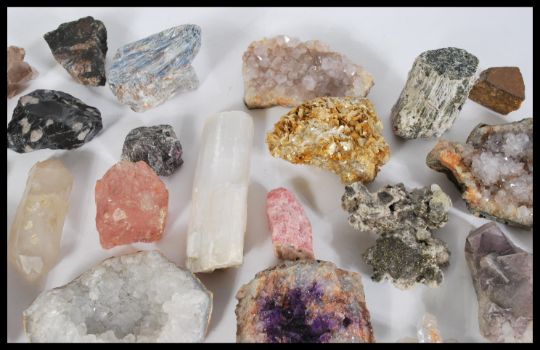 A collection of geodes to include amethyst, gold stone, quartz and other semi precious stones, please see images. Measures: 4cm high x 13cm wide average size.