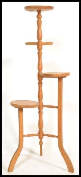 A 20th Century four tier pine plant stand / torchere, central turned column raised on tripod splayed feet. Measures: 112cm tall.