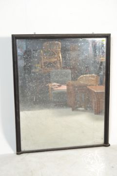 A large Victorian 19th century ebonised mahogany shop mirror. Of tall large form with an ebonised mahogany cushion frame with mirror glass centre. Original back panels in place. Taken from a very old shop in Bath. Measures: 157cm high x 130cm wide.