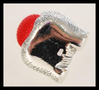 A vantage 20th century silver pin cushion in the form of a teddy bear with a red cushion to its back.