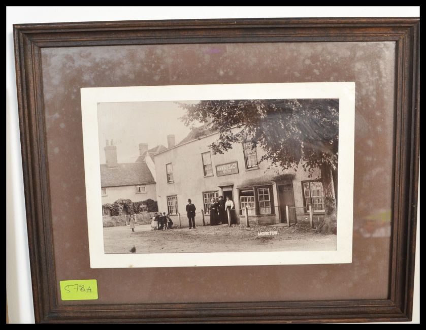 An Edwardian original photograph of village pub selling Hawkes brewery beer of Swavesey, Cambridge at the White Hart Inn Ongar Moreton in Essex, framed and glazed.