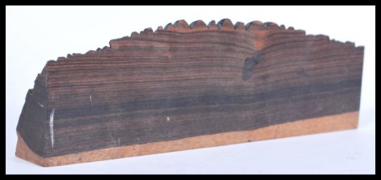 A 19th century Burmese name plaque with inscription T. Tutton having carved detailing of a Chinese dragon and floral decoration. Measures: 9.5cm high x 30cm wide x 4cm diameter.