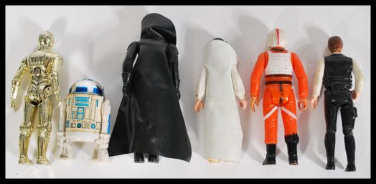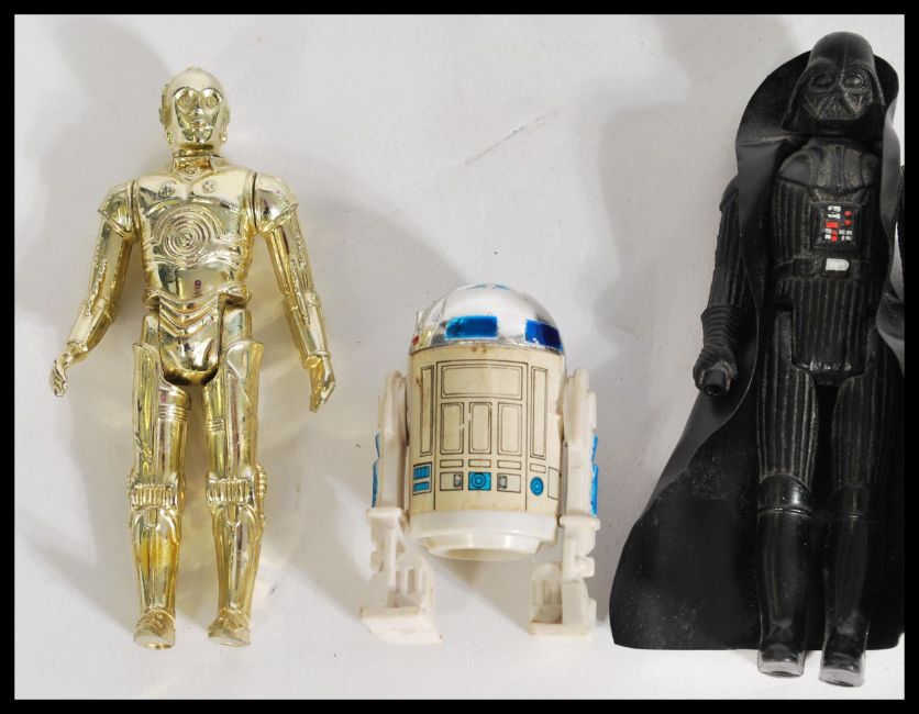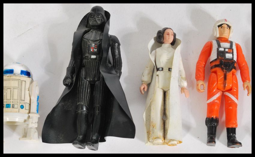 A group of vintage action figures to include Star Wars Darth Vader, C3PO, R2D2, Princess Leia, etc. Please see images. Measures: 11cm high darth vader.