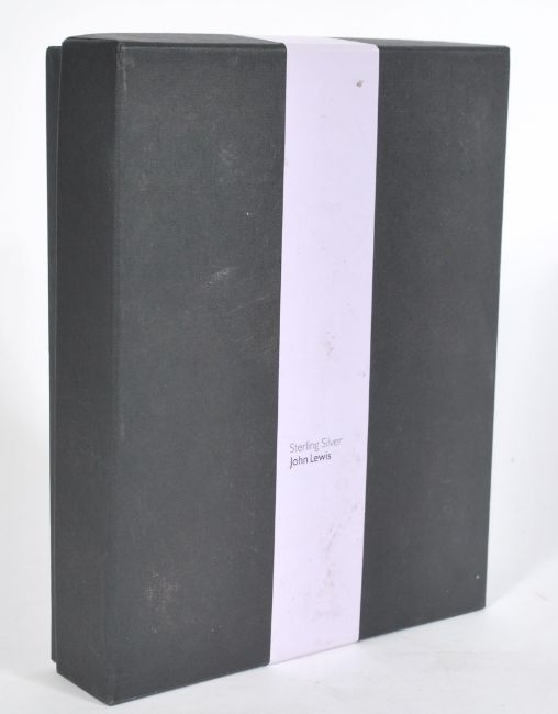 A silver hallmarked John Lewis easel back picture frame complete in original box. Picture size 10cm x 15cm. Measures: 16cm high x 15cm wide.