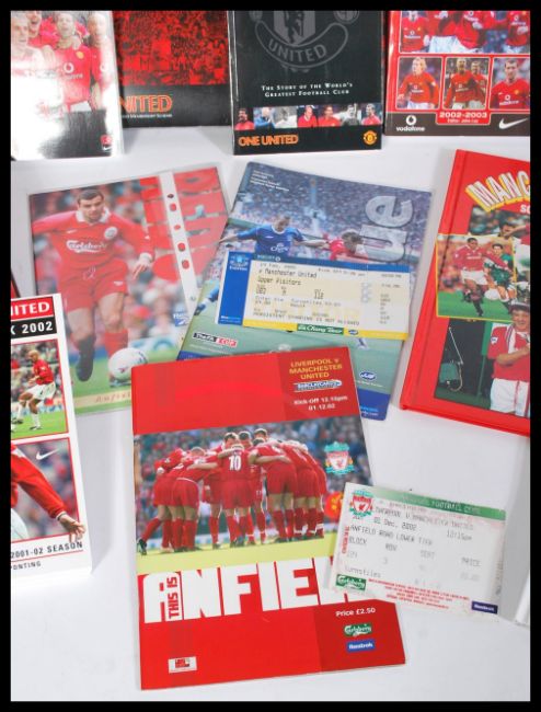 A collection of 20th Century Manchester United Football Club members packs dating from the 2001 - 2002 season together with two programmes for Liverpool v Manchester united ( one with ticket ) and Chelsea v Manchester United ( ticket ). measures: 30cm high x 21cm wide.