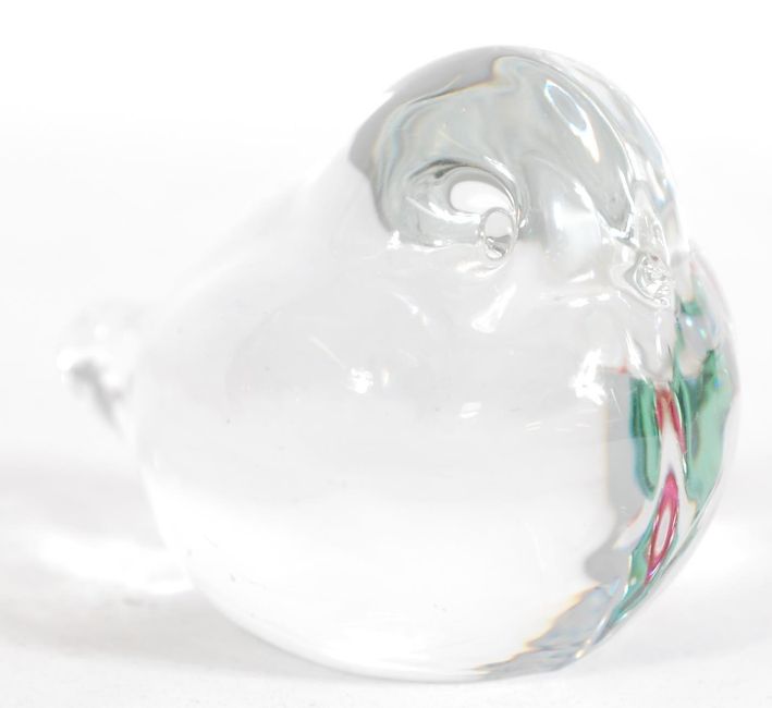 A collection of 20th century vintage glass ornaments to include a pair of green glass sherry glasses with clear glass stems, a tall novelty dog figurine, a green glass paperweight with interior putti, an Art Deco style green glass frog centre piece. Please see images for full details. measures: 13cm high x 9.5cm wide x 12cm diameter.