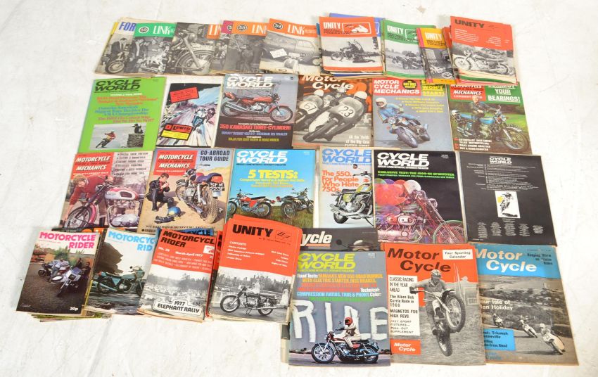 A collection of vintage motorcycle magazines and publications. Please see images.