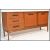 A vintage retro 20th century teak wood sideboard raised on tapered supports having a fall front section flanked by three drawers and twin cupboards. Measures: 72cm high x 151cm wide x 44cm deep.