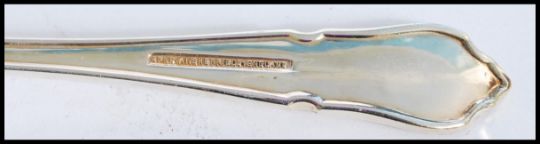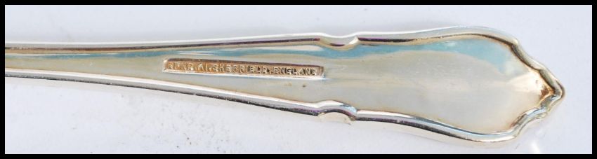 A large 20th century canteen of silver plated cutlery set within a light oak canteen case with red baize lining. The flatware marked EPNS A1 by Samuel Peace , Sheffield. Case measures 8cm-high 59cm-wide.