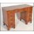 A Georgian revival 20th century bow fronted twin pedestal writing table desk in yew wood with tooled green leather writing skiver. Measure: 75cm high x 115cm wide x 52cm deep.