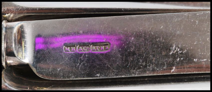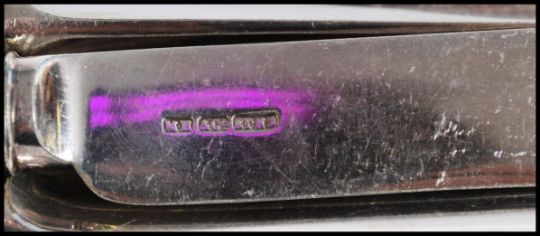 A selection of silver plated cutlery to include Martin Hall & Co knives and forks, Thomas Bradbury & Sons knives and forks, a selection of Walker & Hall cutlery to include teaspoons, soup spoons, forks and knives etc. Largest spoon measures 30 cm long.