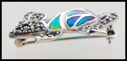 A silver plique a jour brooch in the form of a mouse, having a hinge pin to the verso. Weight 4.5g.