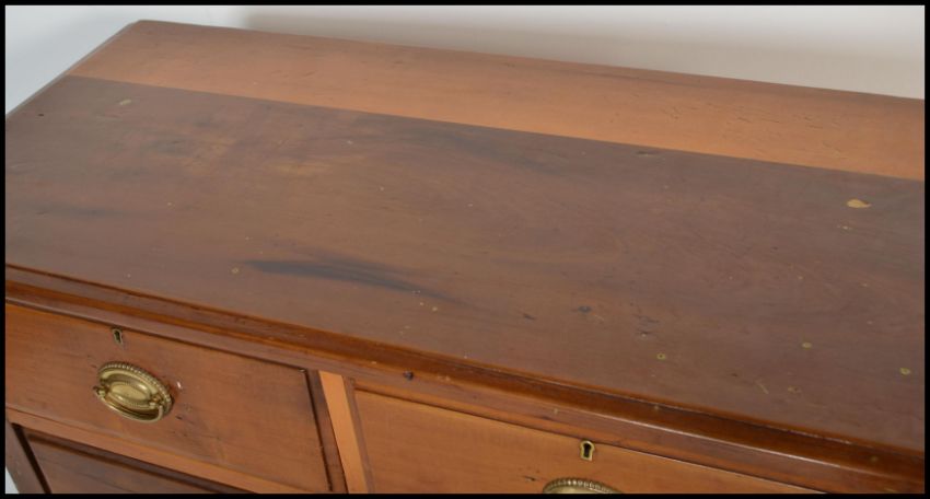 An Edwardian walnut cottage chest of drawers being raised on a shaped plinth base with 2 short and 2 deep drawers having flared top above
