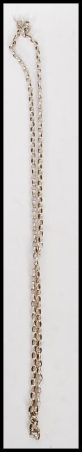 A selection of silver necklace chains to include a heart clasp necklace and herringbone chain. Total weight approx 81g. Longest measures 58 cm.